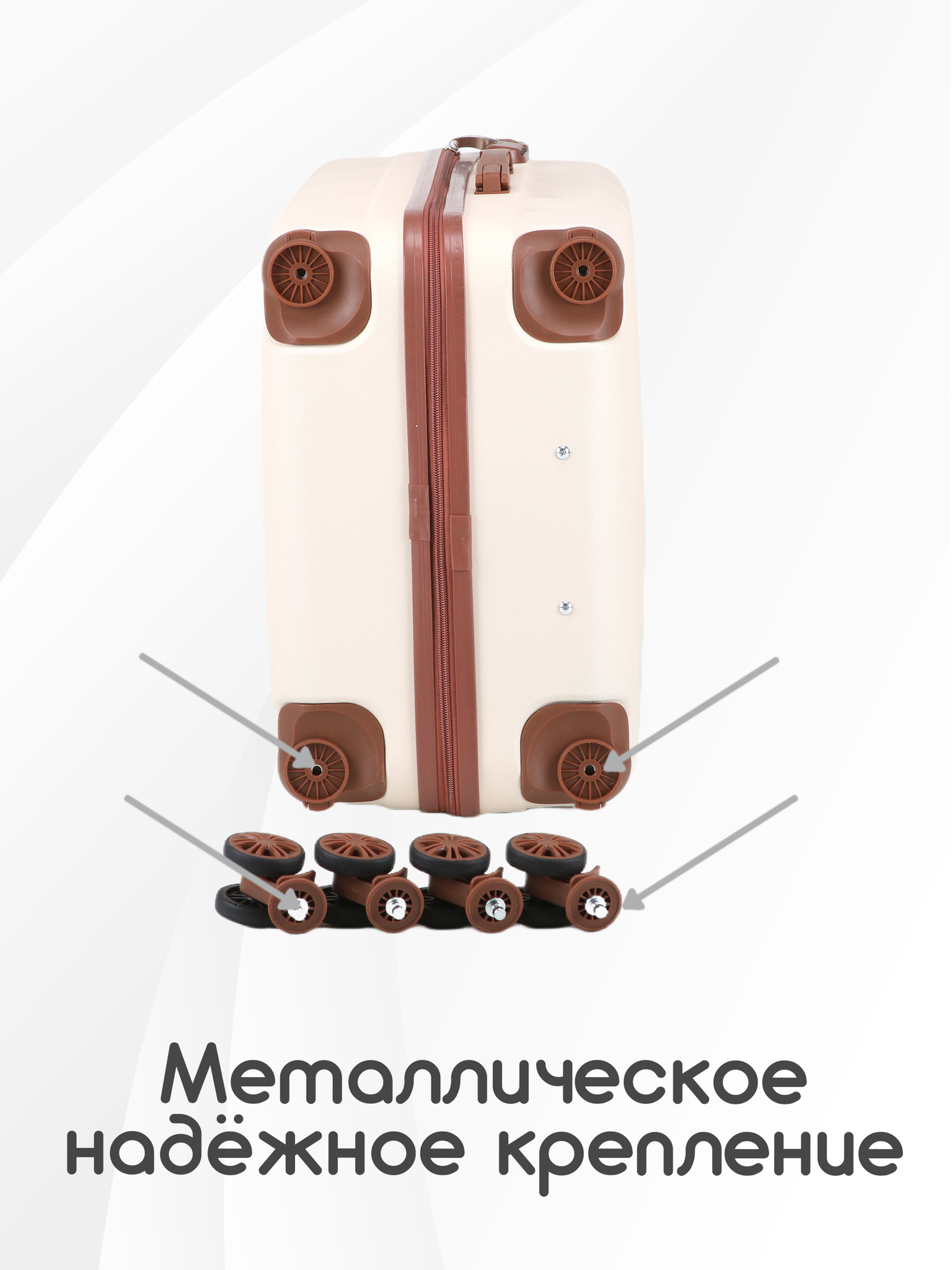 Чемоданы из высокопрочного, облегченного ABS пластика со съёмными колёсами.